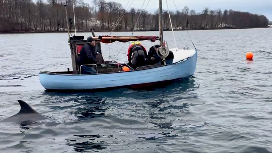 He mentions an extra bonus of the work with marine nature restoration, and it is the special nature experiences that come with it. Most recently at the laying of mussels, where the team was accompanied by the locally very famous dolphin “Skywalker”, which is currently swimming around in the Bay of Aarhus.