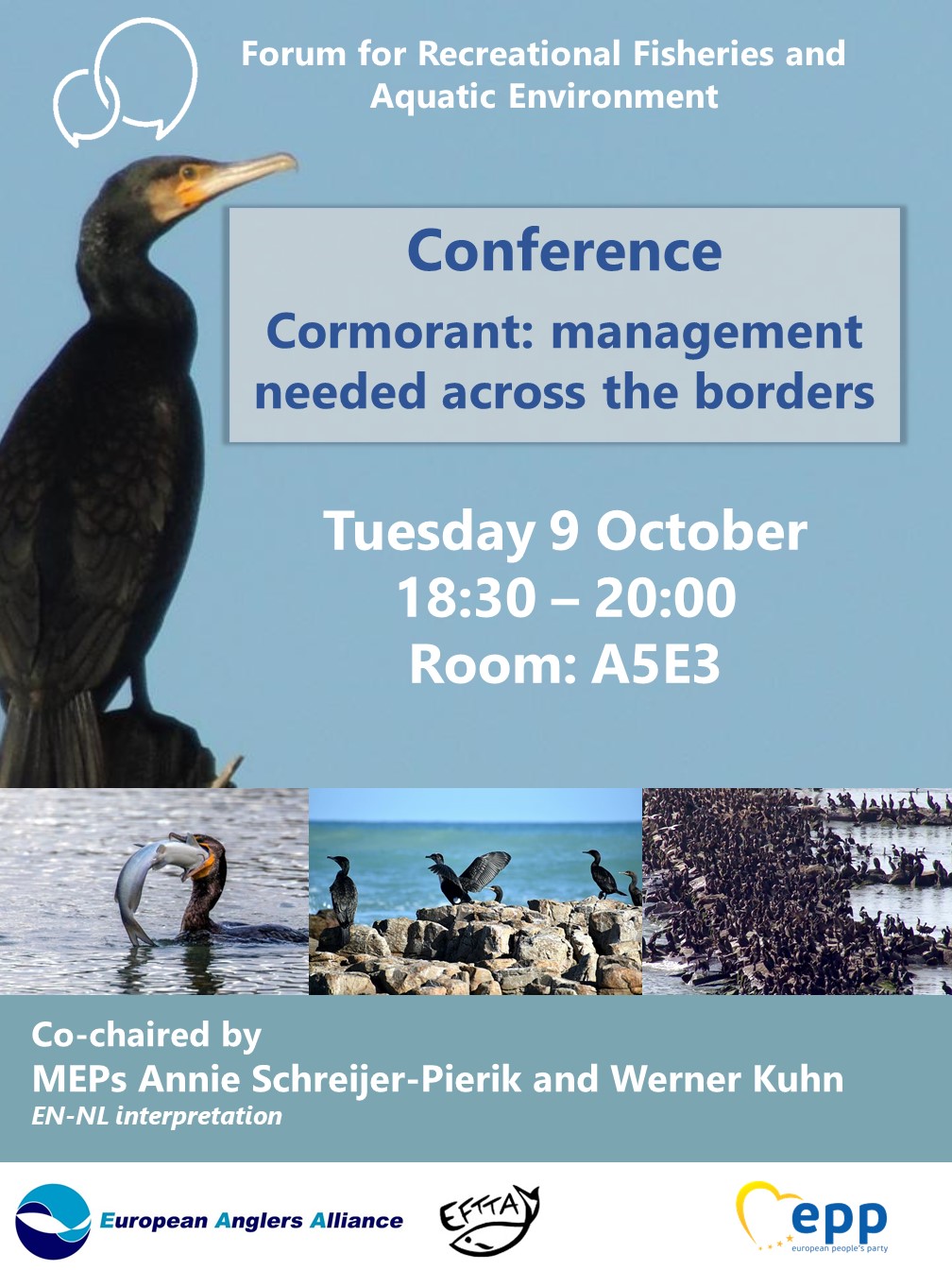 A key message to be delivered at this event is that cross-border cooperation is a necessity to manage properly and cost efficiently the cormorant population – as the European Parliament requested ten years ago.