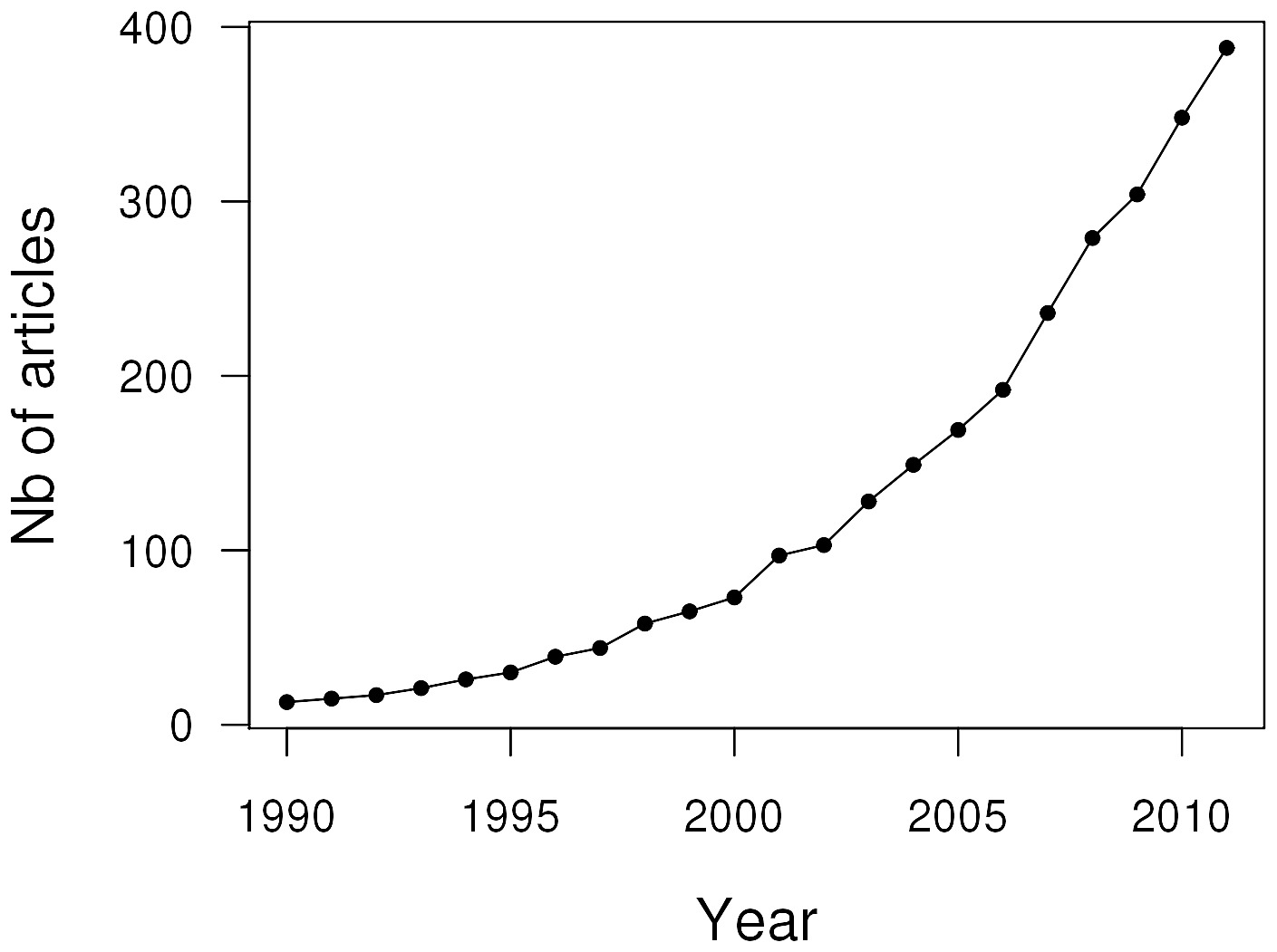 Number of scientific papers citing the term “recreational fisheries” from 1990 until 2011: