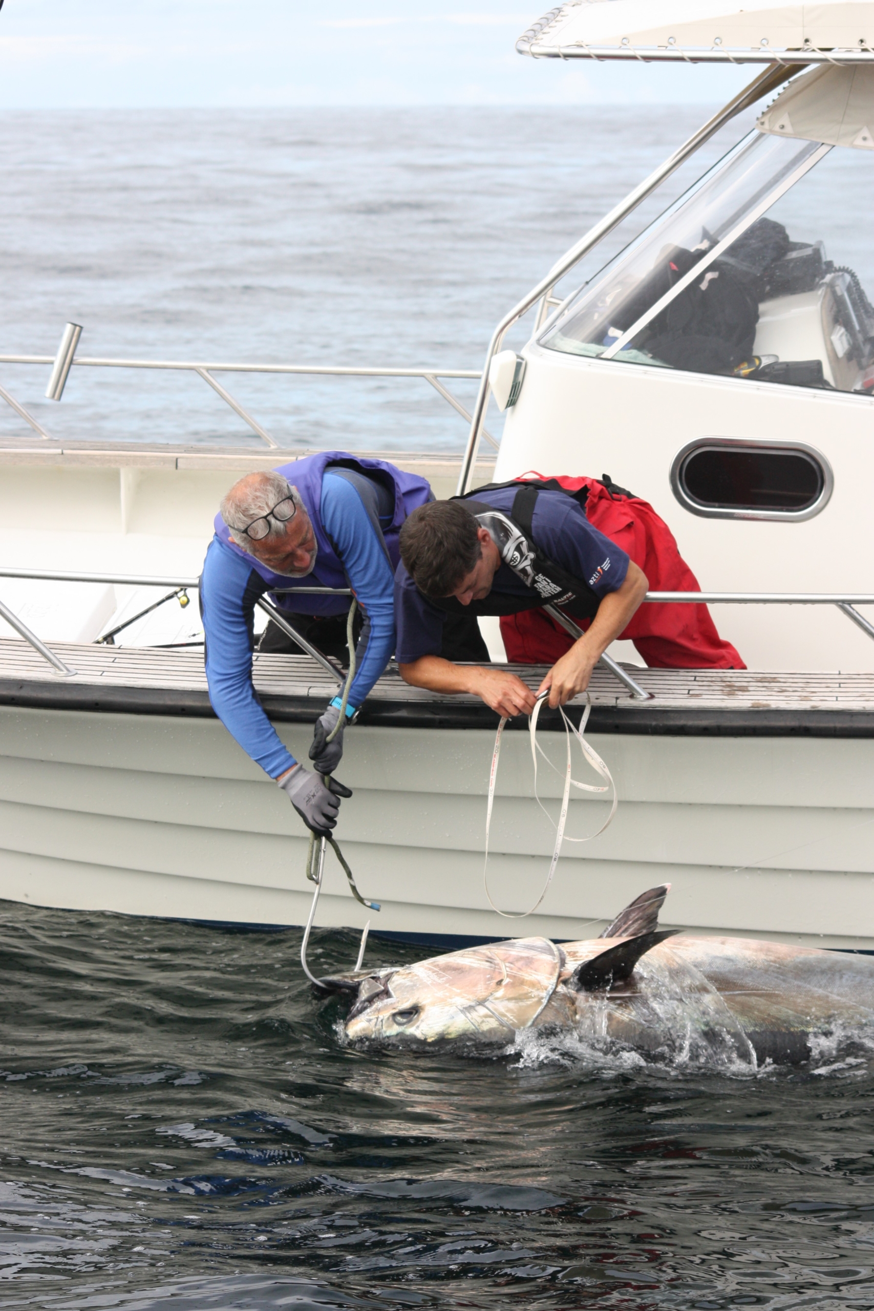 The data from the tagged giants will provide unique information on the migration patterns of these northern bluefin tunas. A genetic sample is also collected from each fish. The project continues for another few weeks.