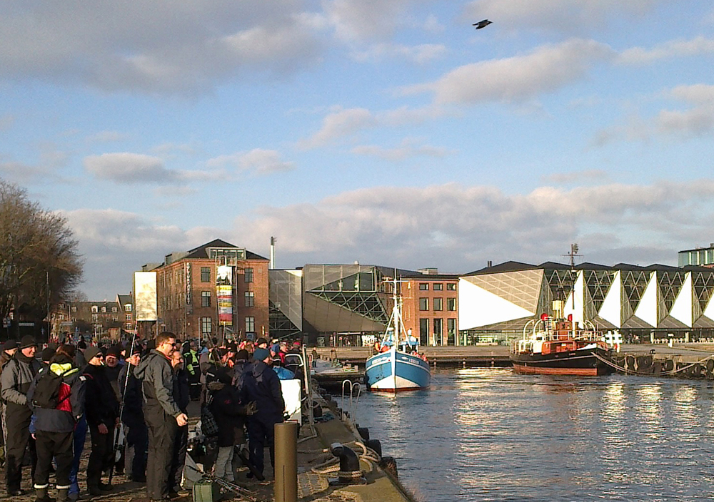 The picture: Anglers waiting for the charterboat a cold but beautiful December morning at Helsingør harbour, Denmark.